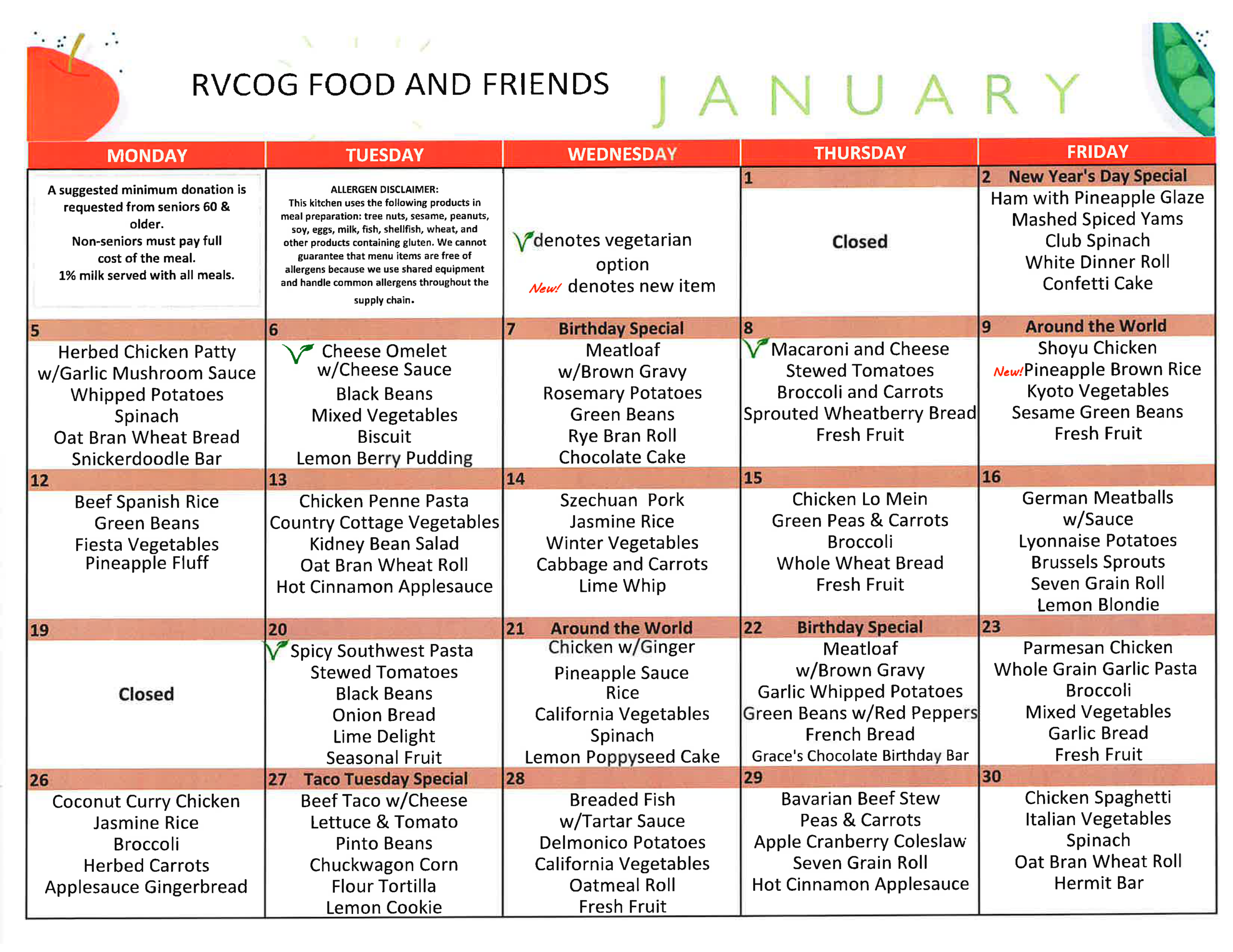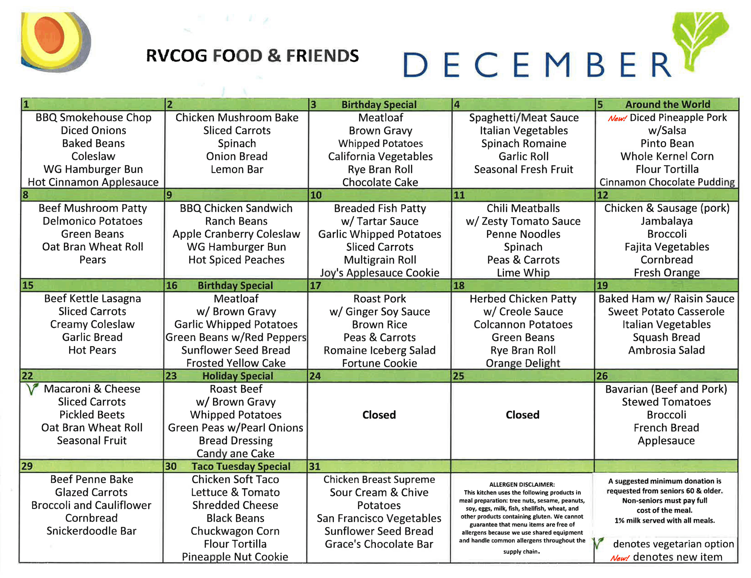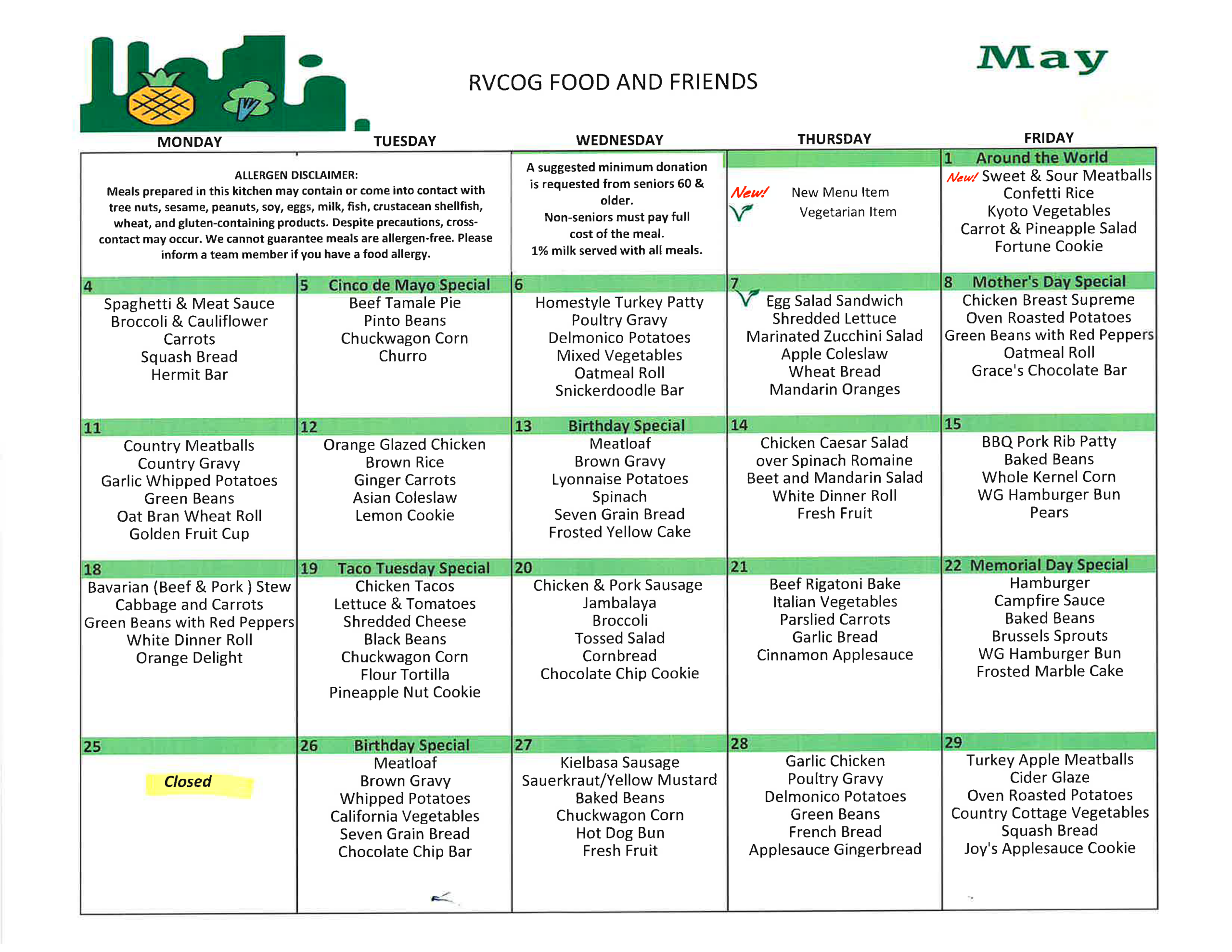 - Click here for a full list of Senior Dining Site locations and days of operation.