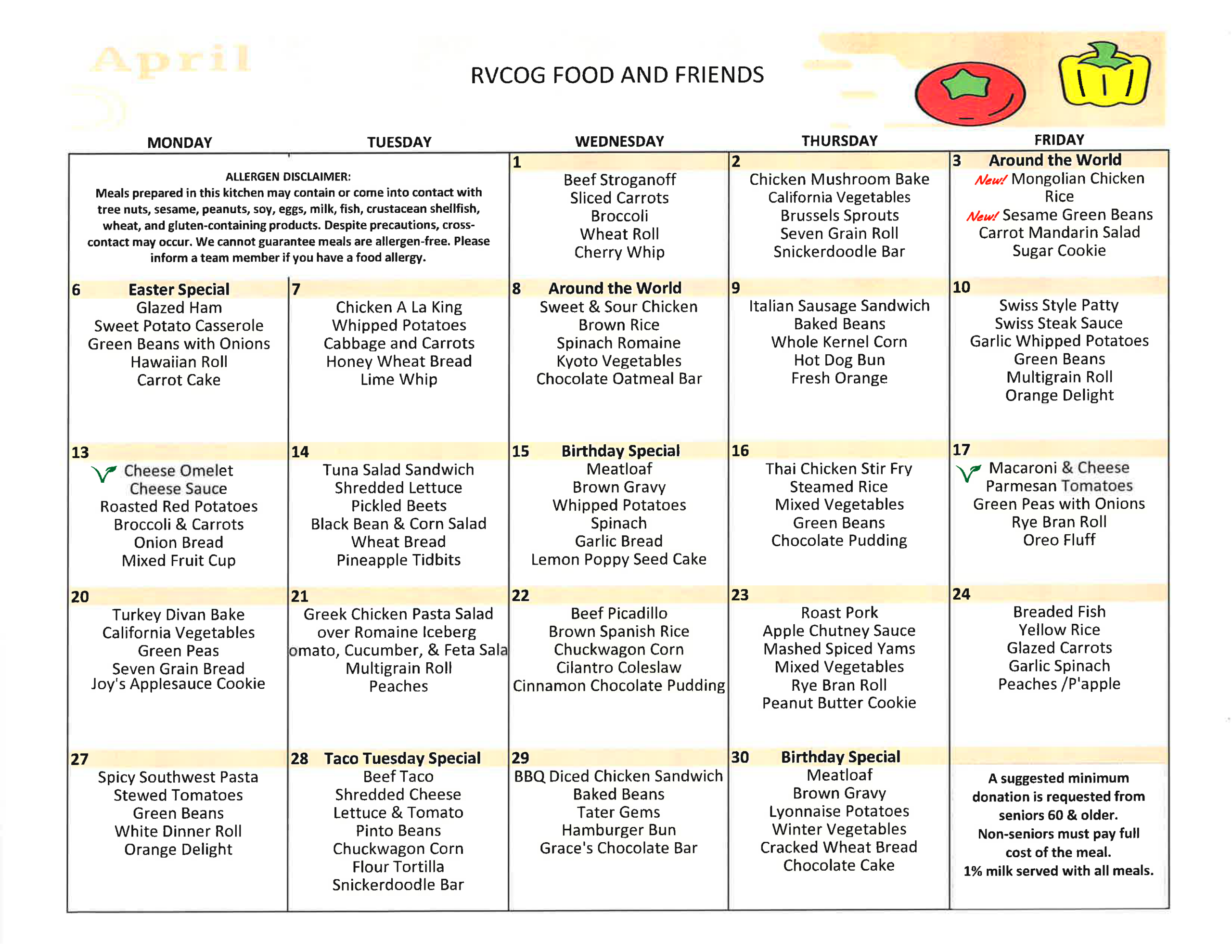 - Diabetic and low-salt meals are available upon request. Please consult your doctor to make sure that the meals meet your specific dietary needs.